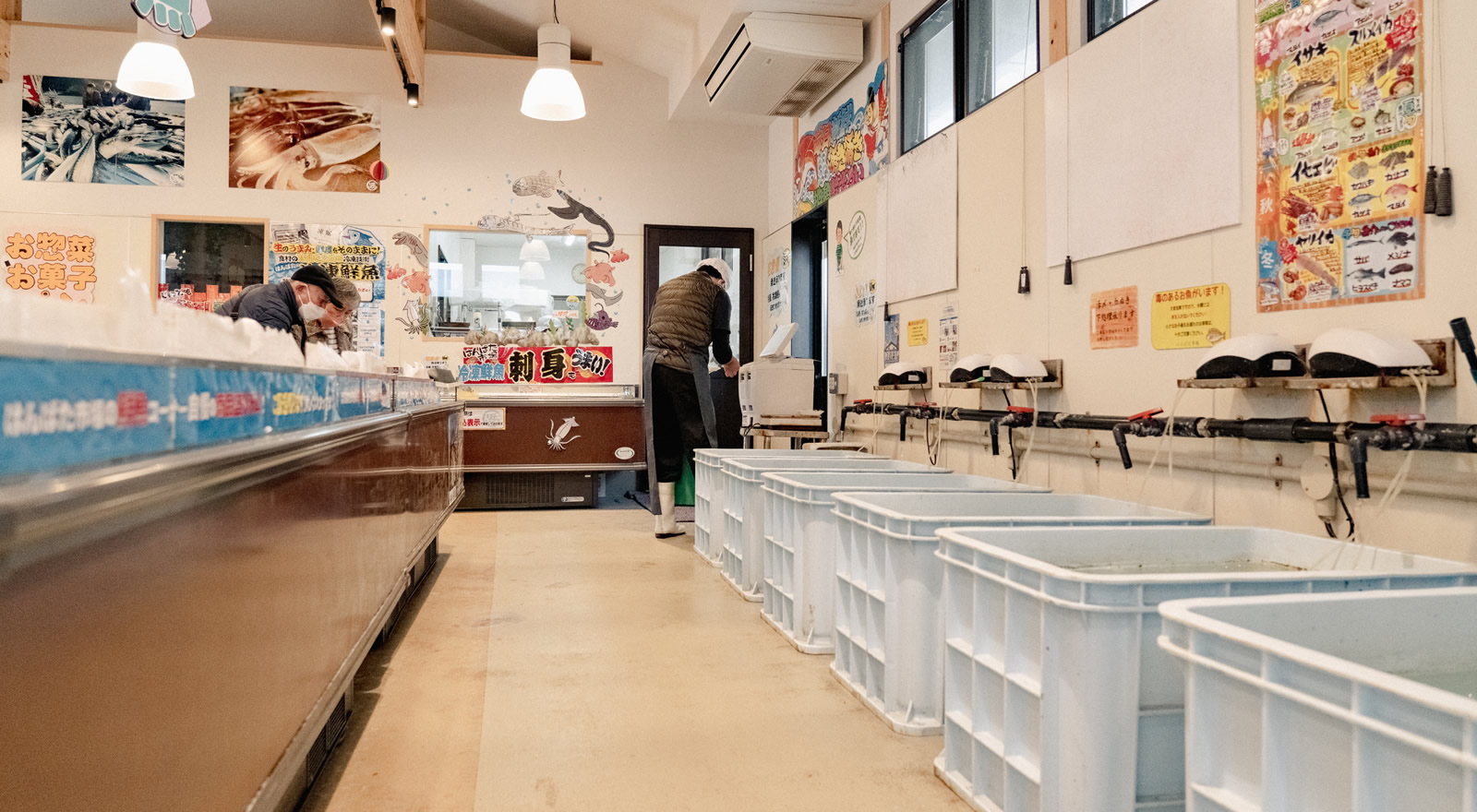 はんばた市場で働くようになってからは、魚のさばき方や盛り付け方も身につけた。定番の三枚おろしはもちろん、大名おろしや姿造りなどもできるようになったという。